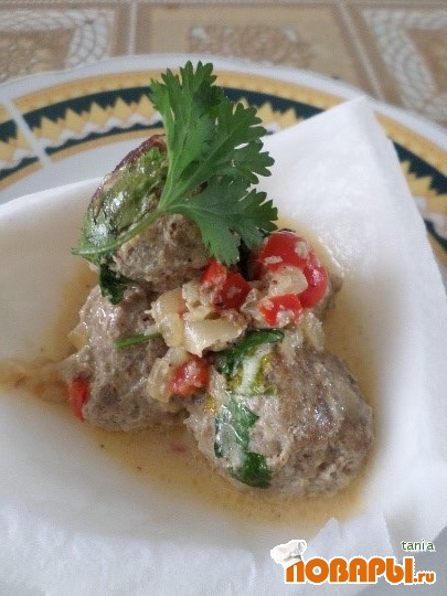 Смешать фарш с яйцом, соевым соусом, чесноком, имбирем, солью и перцем. Скатать шарики размером с орех. Обжарить в небольшом количестве масла. Отложить.