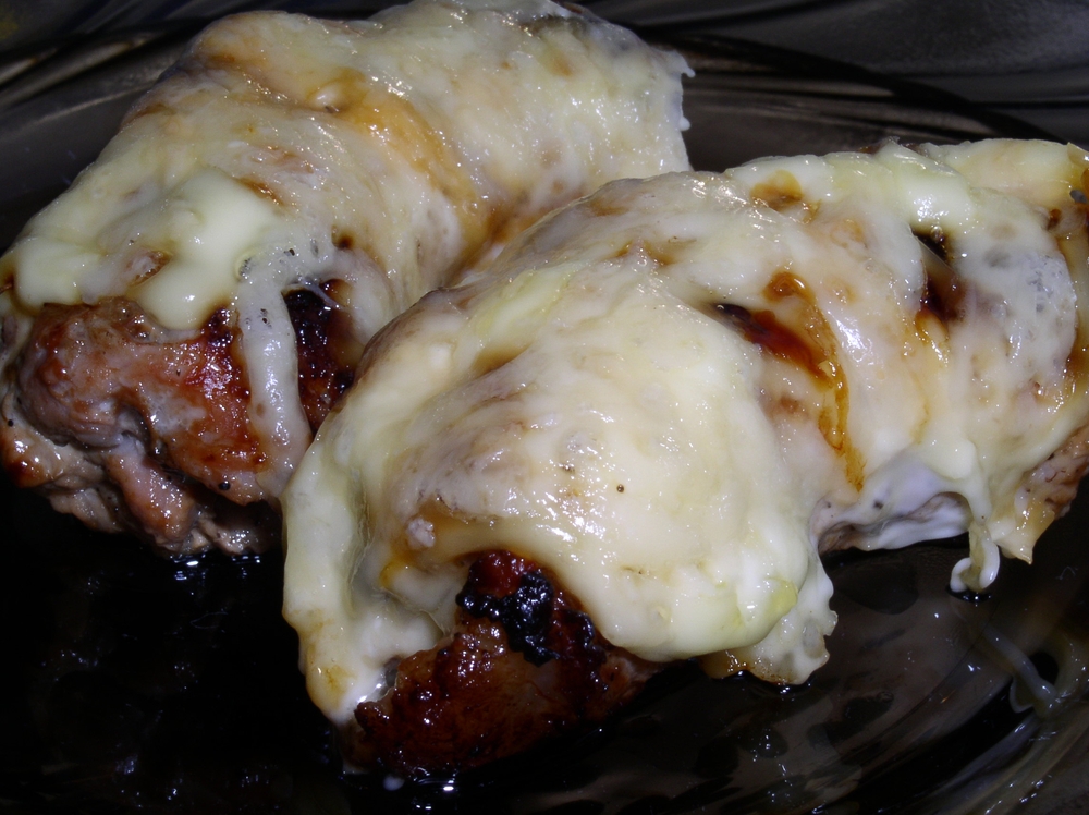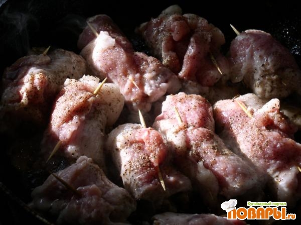 Отбивную нарезать на порционные кусочки, отбить, посолить, поперчить.