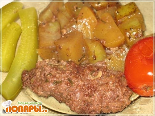 Сковороду с мясом аккуратно достань из духовки (если они потушились в ней не менее 20 минут), рулетики переверни двумя вилками, а овощи и зелень разложи между мясом, не пугаясь того, что что-то между мясом не поместится.
