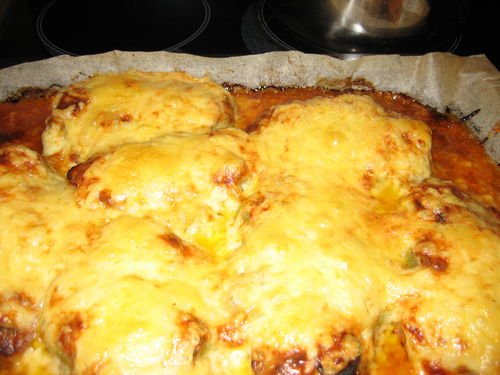 Затем поливаю соусом из кетчупа и майонеза, посыпаю сыром и обратно в духовку до полной готоности.