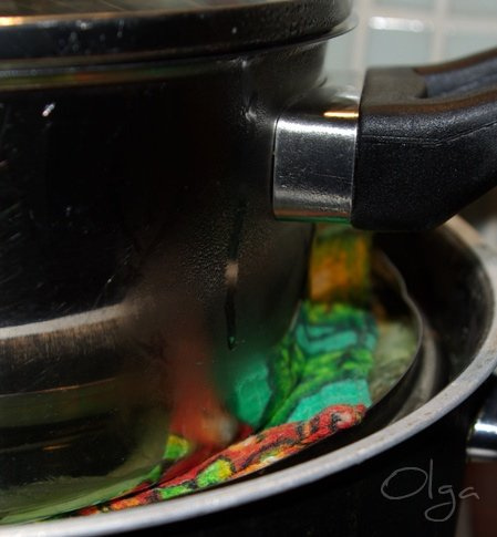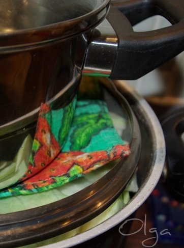 Дальше придумываем гнет. Можно приспособить тарелку или крышку и поставить сверху груз, например, кастрюльку с водой