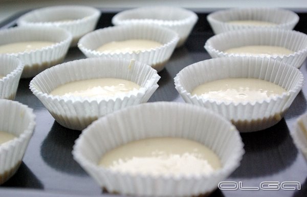 Наполнить формочки, выпекать в разогретой до 180*С духовке ~ 20 минут.