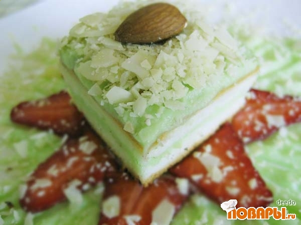 Маскарпоне перемешать с сахарной пудрой, добавить пару капель зеленого красителя и мятную эссенцию. Хорошо перемешать.