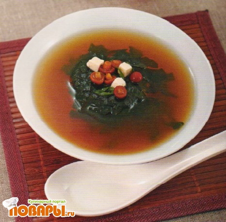 Пасту мисо развести 2- 3 ст. ложками тёплого бульона.