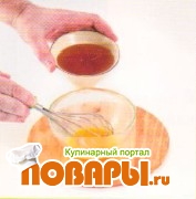 Яичные желтки смешать с крепко заваренным чаем, соевым соусом и лимонным соком. Всыпать оставшуюся сахарную пудру, перемешать. Взбивать смесь на водяной бане до крепкой пышной пены.