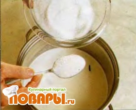 Влейте тонкой струйкой молоко и сливки в яичную смесь, перемешивая венчиком. Переложите смесь в кастрюльку, поставьте на огонь и, помешивая, доведите до начального этапа кипения.