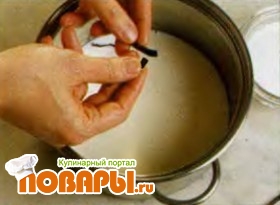 Внимательно процедите крем через ситечко, чтобы удалить ваниль и комки в случае их образования, и оставьте остывать.
