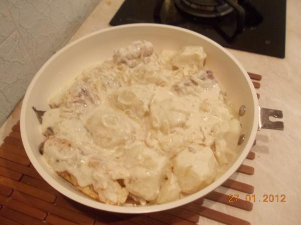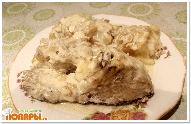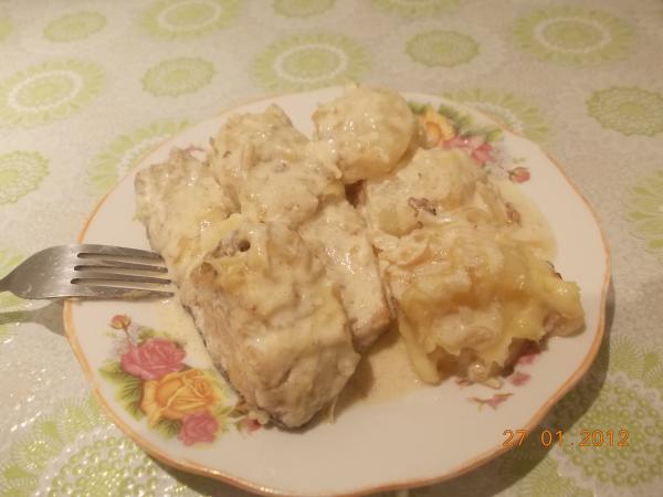 Налим в луково-сметанном соусе