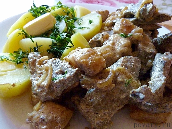 Думаю, что свиная печень хорошо сочетается с отварной картошечкой. Приятного аппетита!