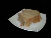 Выложить на дно смазанной растительным маслом формы лист лазаньи, на него - рыбный фарш, на фарш - несколько ложек соуса. Затем - снова лист лазаньи, фарш, соус. Повторять со всеми листами, закончить тестом, который смазать соусом. Поставить в духовку (170*) на 30 минут до образования легкой золотистой корочки