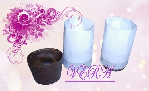 Оборачиваем шоколадные стаканчики полосками пергаментной бумаги, чтоб она плотно охватывала стенки. Закрепить скотчем.