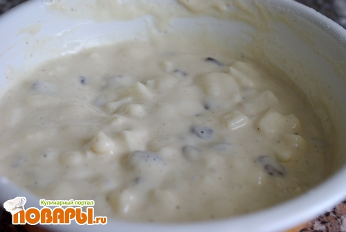 Нежные оладьи с яблоками и изюмом