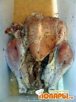 Получившимся маринадом натираем индюшку внутри и снаружи и оставляем на ночь (ну или хоть на несколько часов).