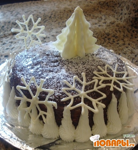 Для глазури так же в микроволновке растопить шоколад с молоком, размешать до однородного состояния и вылить сверху на торт, ровно размазать, украсить по желанию. Торт должен постоять не меньше 5-ти часов в холодильнике.Украшения из шоколада..А-ля сугробы из сливотк