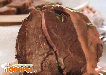 Выньте мясо из маринада, обсушите и жарьте в духовке сначала при 270 °С до образования корочки, затем при 170 °С до готовности.