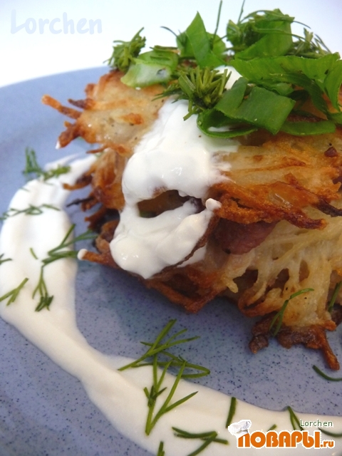 Из картофельной массы сформировать оладьи и обжарить их с двух сторон.