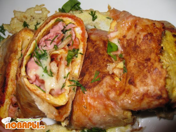 Омлет с колбасой в лаваше