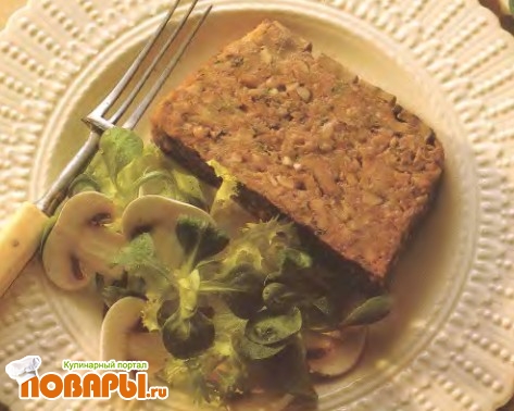 Эту простую и питательную запеканку можно приготовить из любой смеси орехов. Однако наиболее богатый вкус придают ей грецкие орехи. Вкусные шампиньоны украшают это сытное блюдо из запеченной смеси орехов.