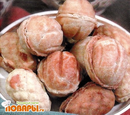 Начинить полученной смесью изделия. Сделать это можно следующим образом: готовые изделия разрезать острым ножом пополам, на каждую часть нанести крем и соединить половинки орешка.