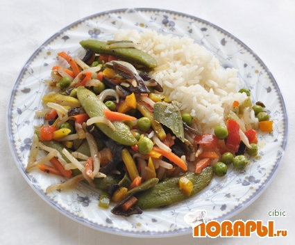 Соединить рис и жареные овощи.