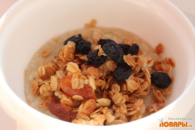 Такая каша подойдет сравнительно маленькому, но жующему ребенку на завтрак, да и не только ребенку.