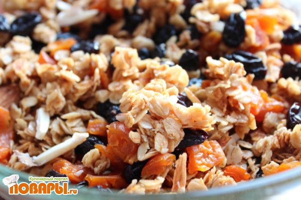 - 50 грамм Мюсли (домашние с миндалем, медом, изюмом и курагой)