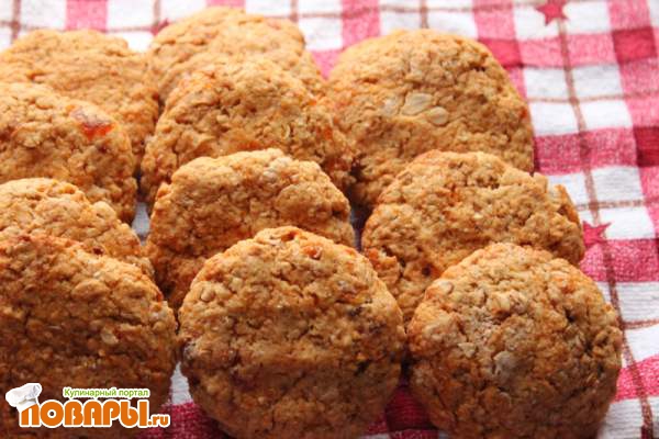 Насыпала в чашку хлопьев, просеяла муку, добавила соль, соду, отруби, проростки зеленой гречки, молотую корицу, абрикосовый джем, перемолотое яблоко (осталась половина от завтрака младшего ребенка), масло. Все это тщательно вымесила руками. В принципе, тесто было приличной консистенции и не сильно липло к рукам (но липло:)).