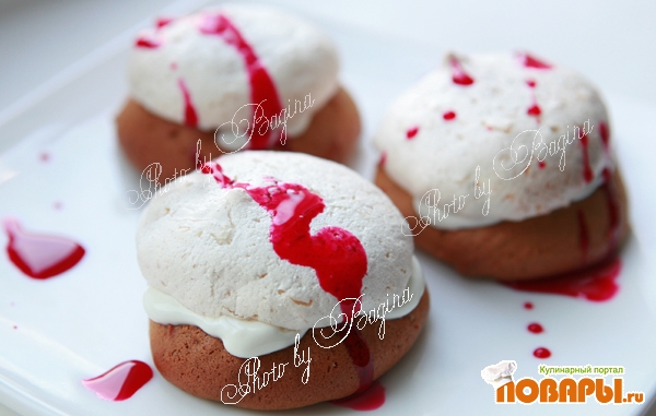 На готовую нашу основу нанести немного сметанки и положить безешки.
