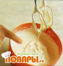 Приподнимите венчики миксера и дайте крему стечься в миску. Если струйкой крема можно "писать" (след задерживается на поверхности), значит крем не надо больше взбивать.