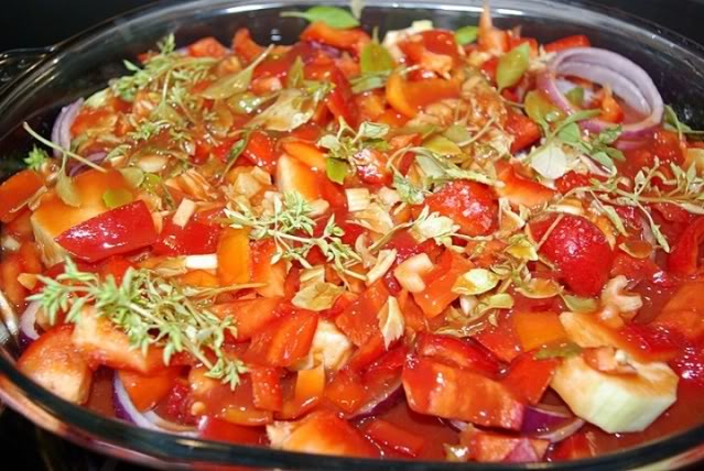Овощи выложить на рыбу слоями или в произвольном порядке, как нравится, не забывая подсаливать.