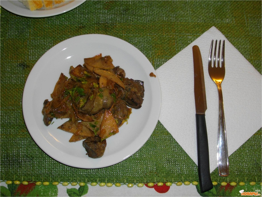 Печень с айвой и вином