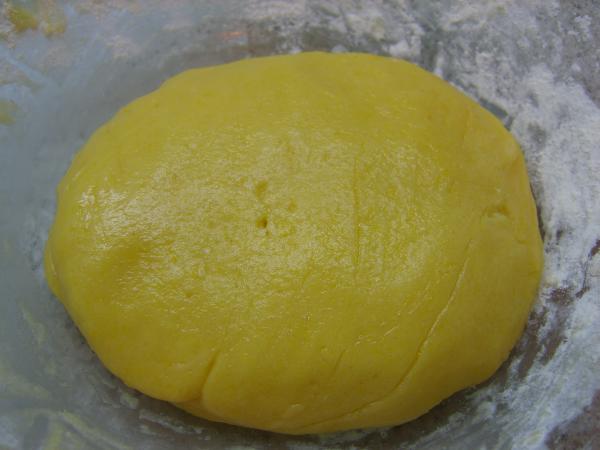 Добавить муку и замесить гладкое тесто. Поставить на 45 мин. в холодильник отлежаться(или положите в морозилку минут на 15-20).