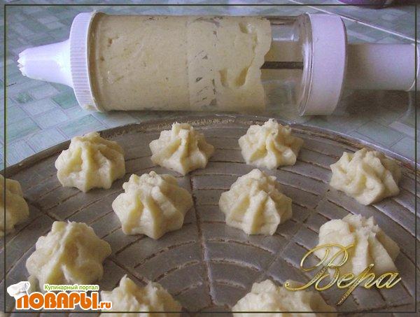 Уложить в шприц или кондитерский мешок с звездчатой насадкой.