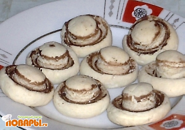 Выложить печенье на противень, застеленный пергаментной бумагой. И испечь в, предварительно нагретой до 180 градусов, духовке 25-30 минут.