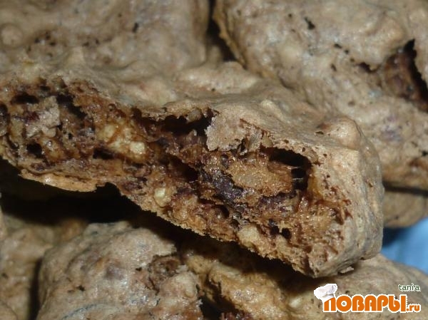 Печенье придумала вдохновившись кокосовыми кучерявчиками. Тот же принцип - взбить белки с пудрой, смешать с сухими ингредиентами, выложить бугорками на пекарскую бумагу и выпекать.