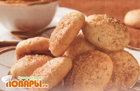 Из муки, орехов, коричневого сахара, размягченного масла и яйца замесите тесто. Сформуйте из него небольшие шарики, затем приплюсните их. Посыпьте сахаром и корицей, уложите на противень смазанный маслом, и выпекайте 15-20 минут при 220 °С.