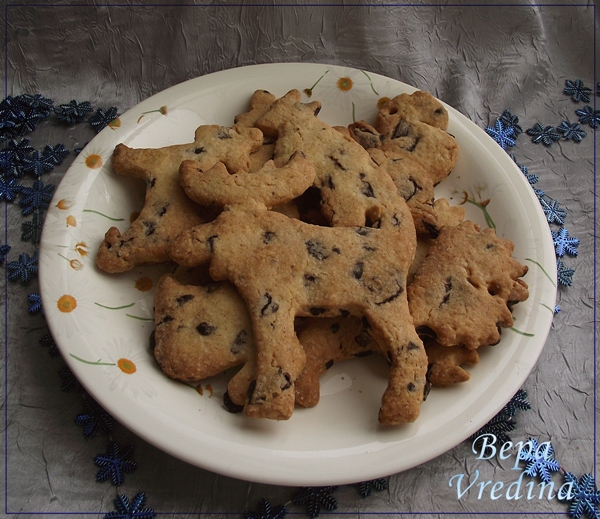 Печенье получается очень вкусным сахарным с кусочками шоколада, невозможно удержаться и не откусить кусочек =)