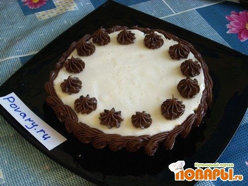 Заправляем шоколадную пасту в кондитерский мешок и украшаем наш торт.