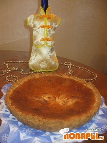 В Форму выкладываем тесто, делаем бортики, затем выкладываем яблоки и заливаем кремом. Выпекать в духовке 50 мин, при теп. 180С