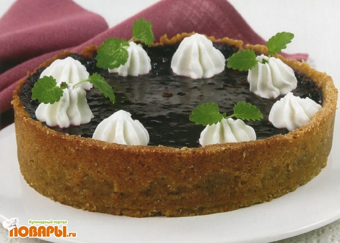 Начинку выложите на корж, накройте пирог пищевой пленкой и охладите. Подавайте со взбитыми сливками.