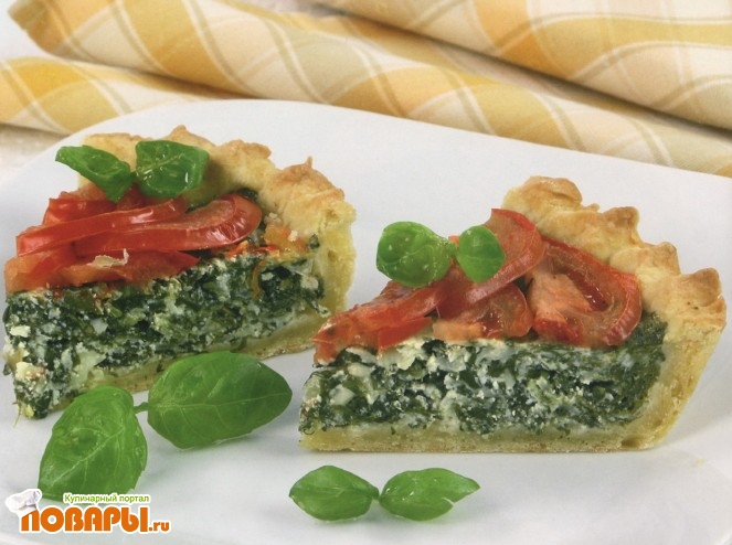 Тесто раскатайте, уложите в форму, смоченную водой, наколите вилкой, накройте фольгой и выпекайте 10 минут при 200 °С. Затем фольгу удалите и выпекайте до золотистого цвета.