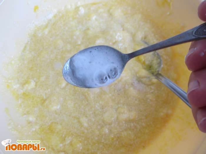 - 0,5 чайной ложки Сода, пищевая (погасить уксусом)