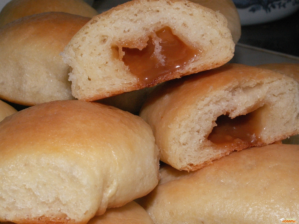 Горячие пирожки смазать растопленным сливочным маслом в смеси с молоком.