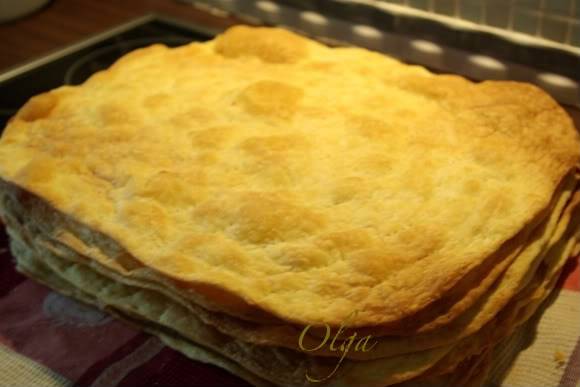 Разделить на нужное количество коржей (шариков), поставить в холодильник. Мин час, желательно больше. Коржи раскатывать добавляя муку (!), выпекать при 200*С. (муки ушло на стаканчик больше)