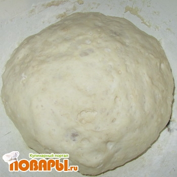 Муку просеиваем, солим, добавляем молоко, подошедшие дрожжи, замешиваем плотное тесто и оставляем на минут 15 в тепле и в покое.