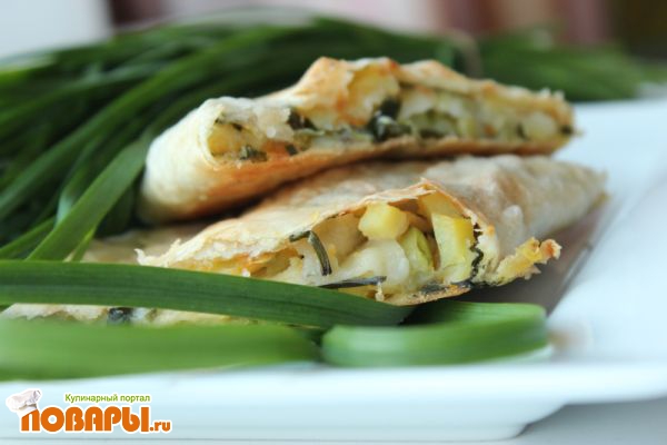 Плацинды запеченные с черемшой, картофелем и тыквой