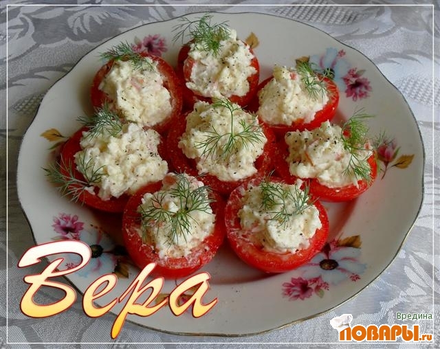 Помидоры разрезать пополам, удалить мякоть(чайной ложечкой).