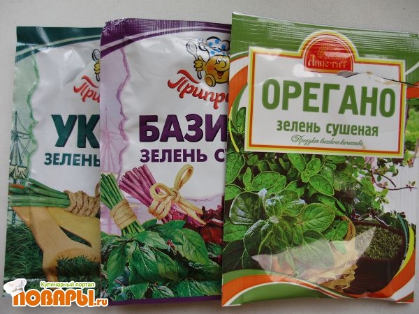 - Специи (сушеный базилик, орегано, укроп)