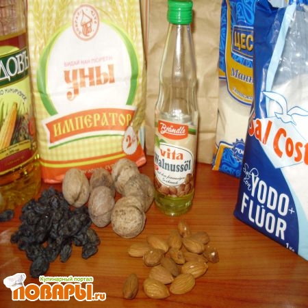 Вкусно еще, когда один из коржей с какао, а на верхний корж налить манный крем + растопленный черный шоколад. Важно масла для коржей не пожалеть и воды не перелить, чтобы потом «резину» не жевать (хотя съедобно). Орех грецкий можно прямо в коржах запекать или в манный крем кидать.