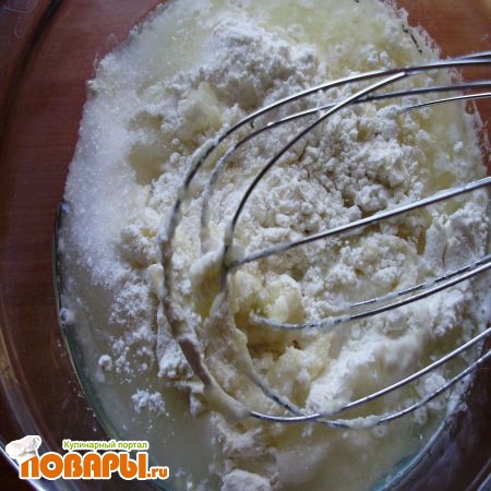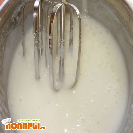Пока тесто превращается в коржи внизу в духовке, варим постный крем с манной крупкой, сахаром и ванилью. Лучше сделать его жидким (но не водянистым!!!!) для пропитки и взбить потом с маслом миксером.